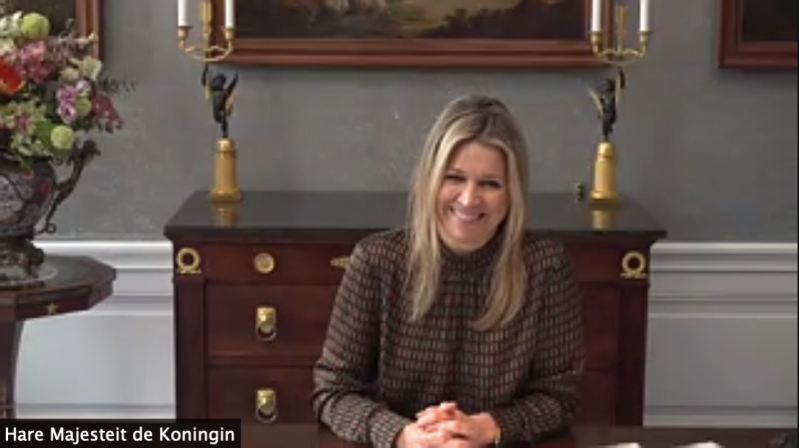 Koningin Máxima bracht online werkbezoek aan koorsector op 8 april 2021.